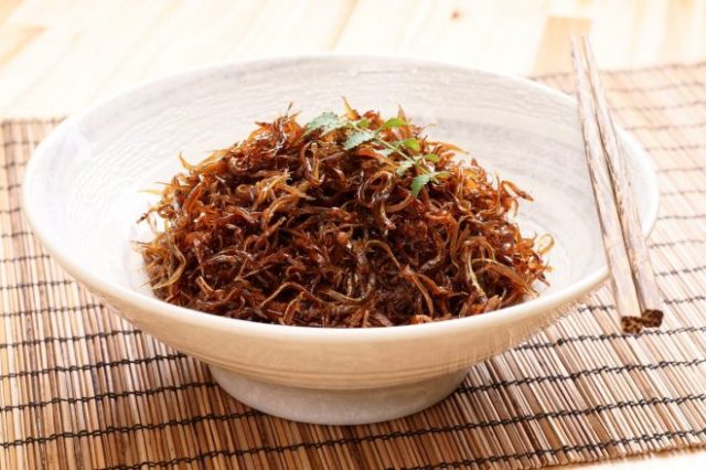 いかなごを甘辛く煮た佃煮で、曲がった釘のような姿からこの名前になったそうです。